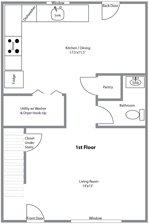2 Bedroom 1.5 Bathroom Floor Plan (1st Floor)