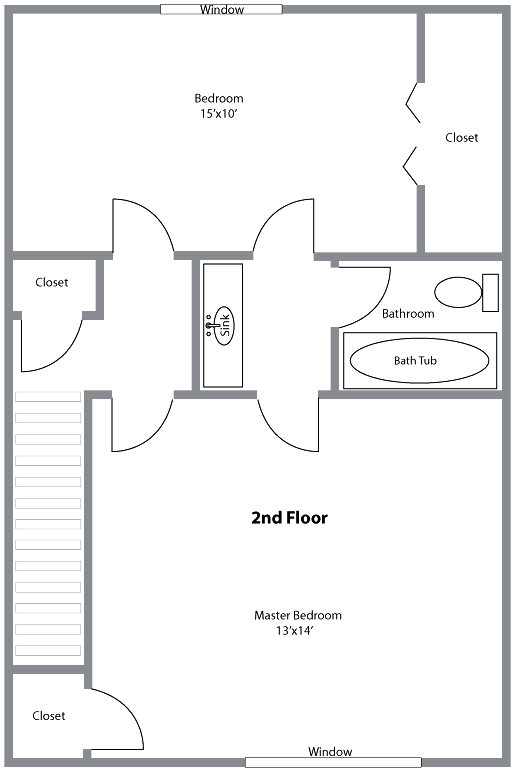 2 Bedroom 2.5 Bathroom Floor Plan (2nd Floor)